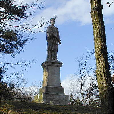 Za Plavem se žlutá odpojí a vystoupáme k chatám. Kolem skály se železnou sochou Jana Nepomuckého sestoupíme k Malší.