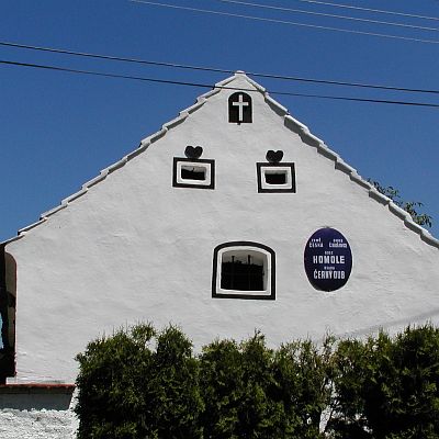 Dům s ozdobným štítem obce na hlavní černodubské křižovatce