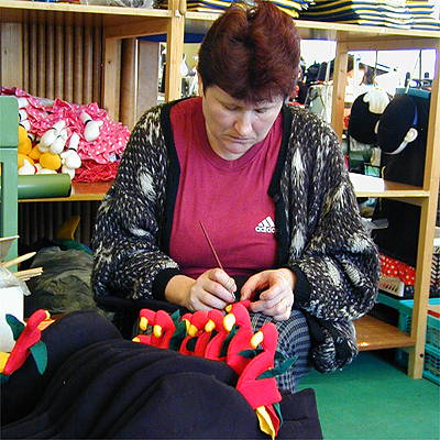 Vlastní styl výrobkům propůjčuje především malovaný obličej a osobitý rukopis, přenášený z makety a pauzovacího papíru až do podoby výrobního střihu. Dobrou průpravou do světa hraček byla pro Hanu Hrušovou práce v dílnách českobudějovického Malého divadla. Do Záboří se firma přestěhovala v polovině 90. let, v současnosti zaměstnává na dvacet lidí z blízkého okolí.